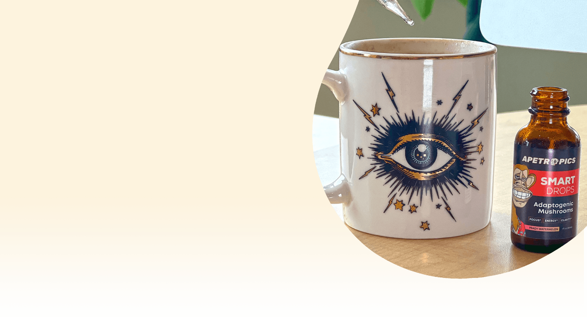 Apetropics Smart Drops is a powerful proprietary blend of 5 active organic adaptogenic mushrooms: lion's mane, cordyceps, reishi, chaga, and turkey tail. It is scientifically designed to improve energy, focus, and mood while decreasing stress — all things that, combined, improve your productivity.